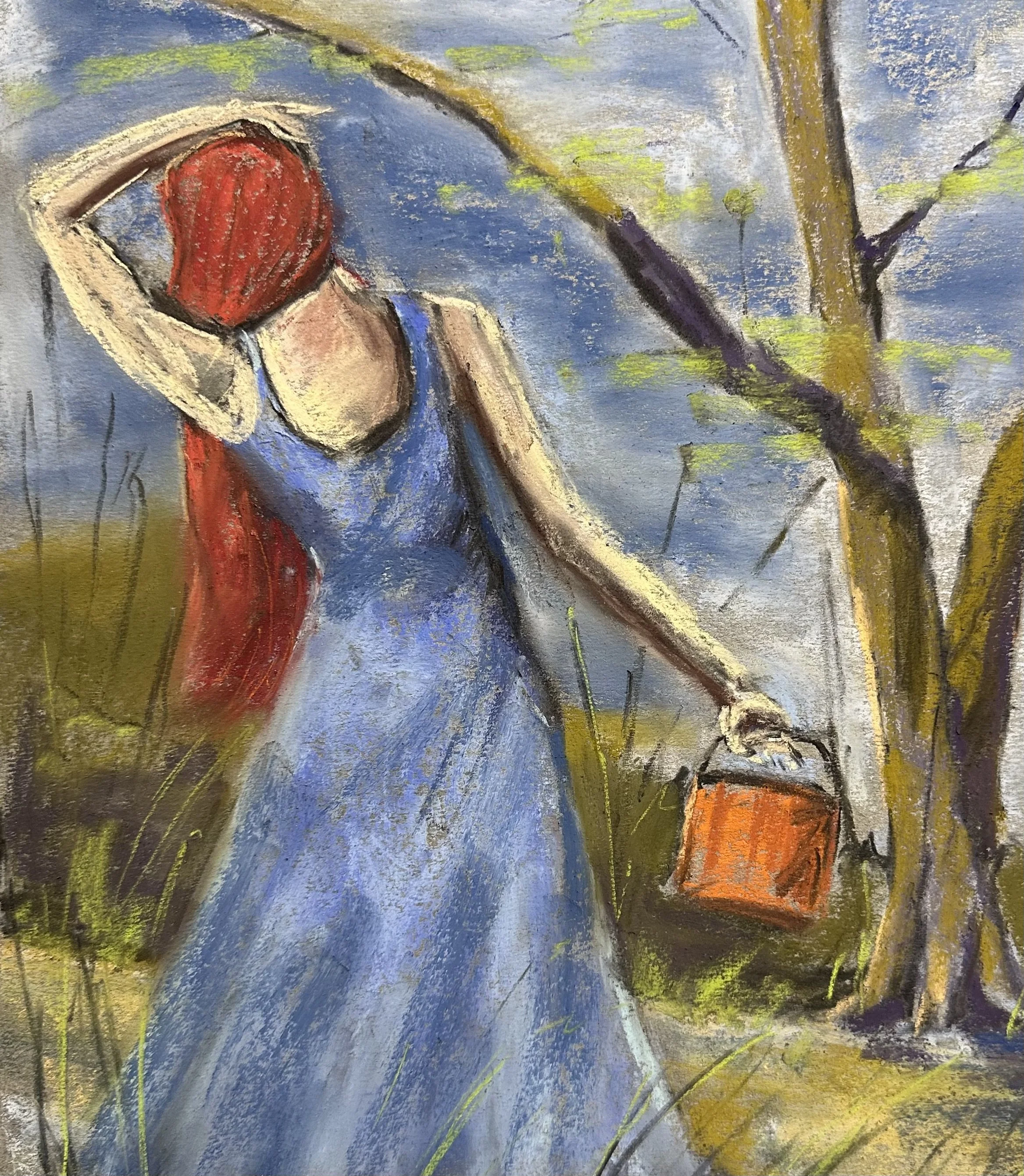 This is a pastel portrait I did of a mother heading to get water on a farm.