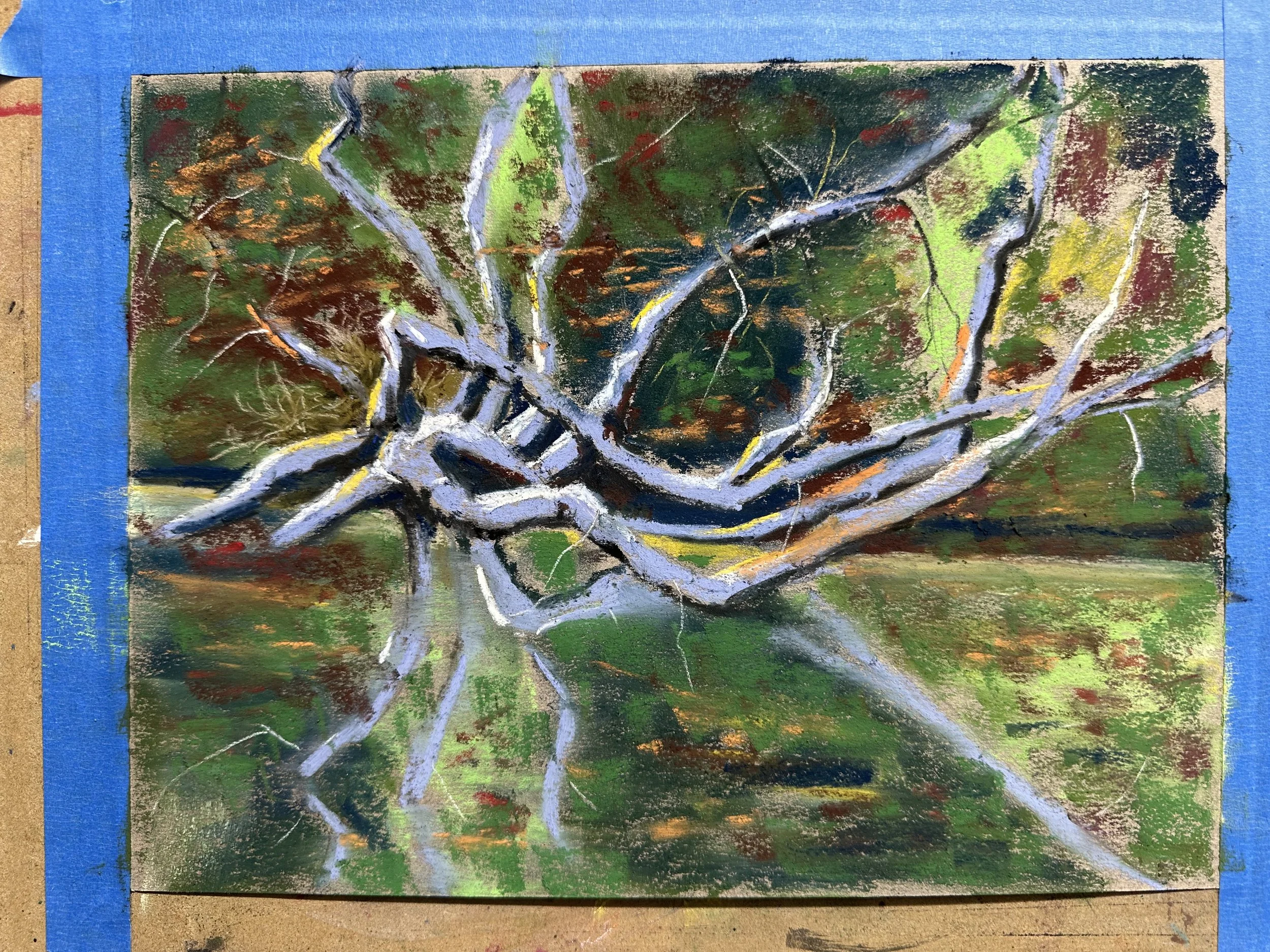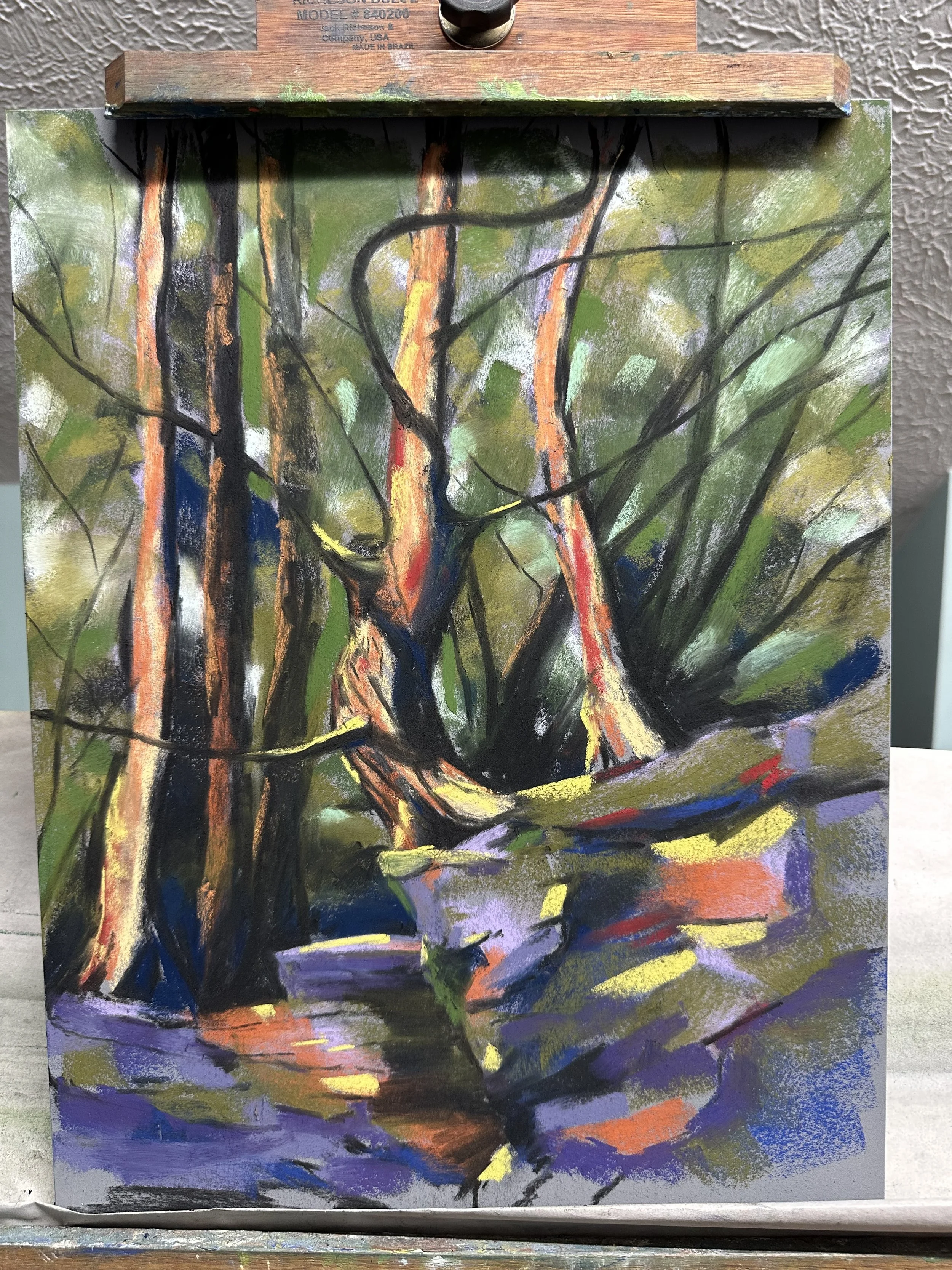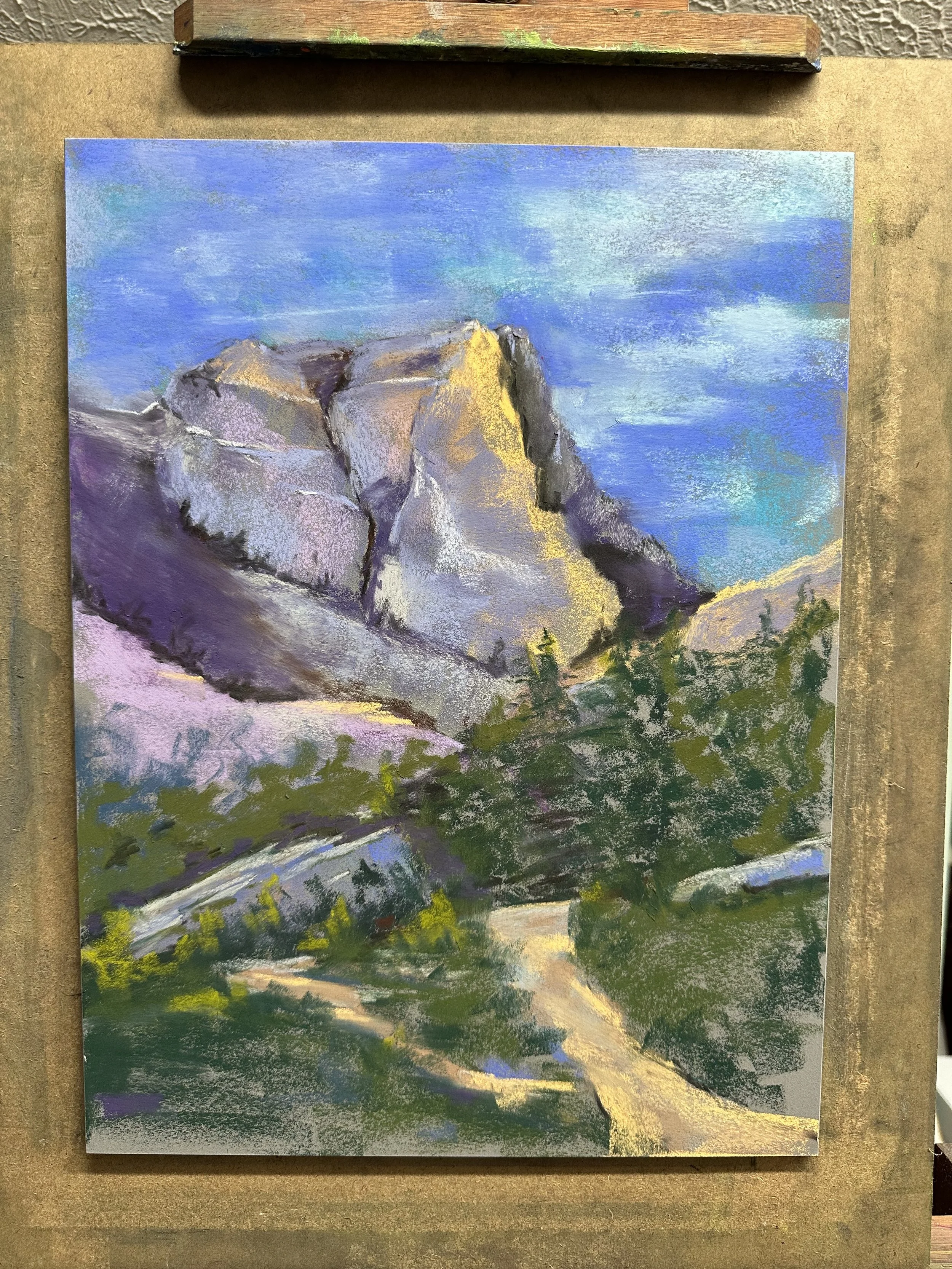 Here is something I started today. It’s a 12x16 ampersand board and the difference between this and the mi teintes surfaces is impressive. It’s way more expensive and I would never do studies with this. But maybe there is a happy medium with some of the mounted papers. The main drawback I see with this board is that I can’t figure out how to get it attached to the easel without blocking the top and bottom.